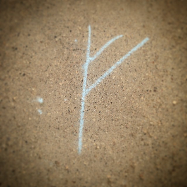 I noticed the rune a few days ago on a walk and thought nothing of it…I saw that it was a rune but allowed for the fact that someone might have accidentally scribed a rune while messing around with sidewalk chalk. Then I saw it again, and again and again.